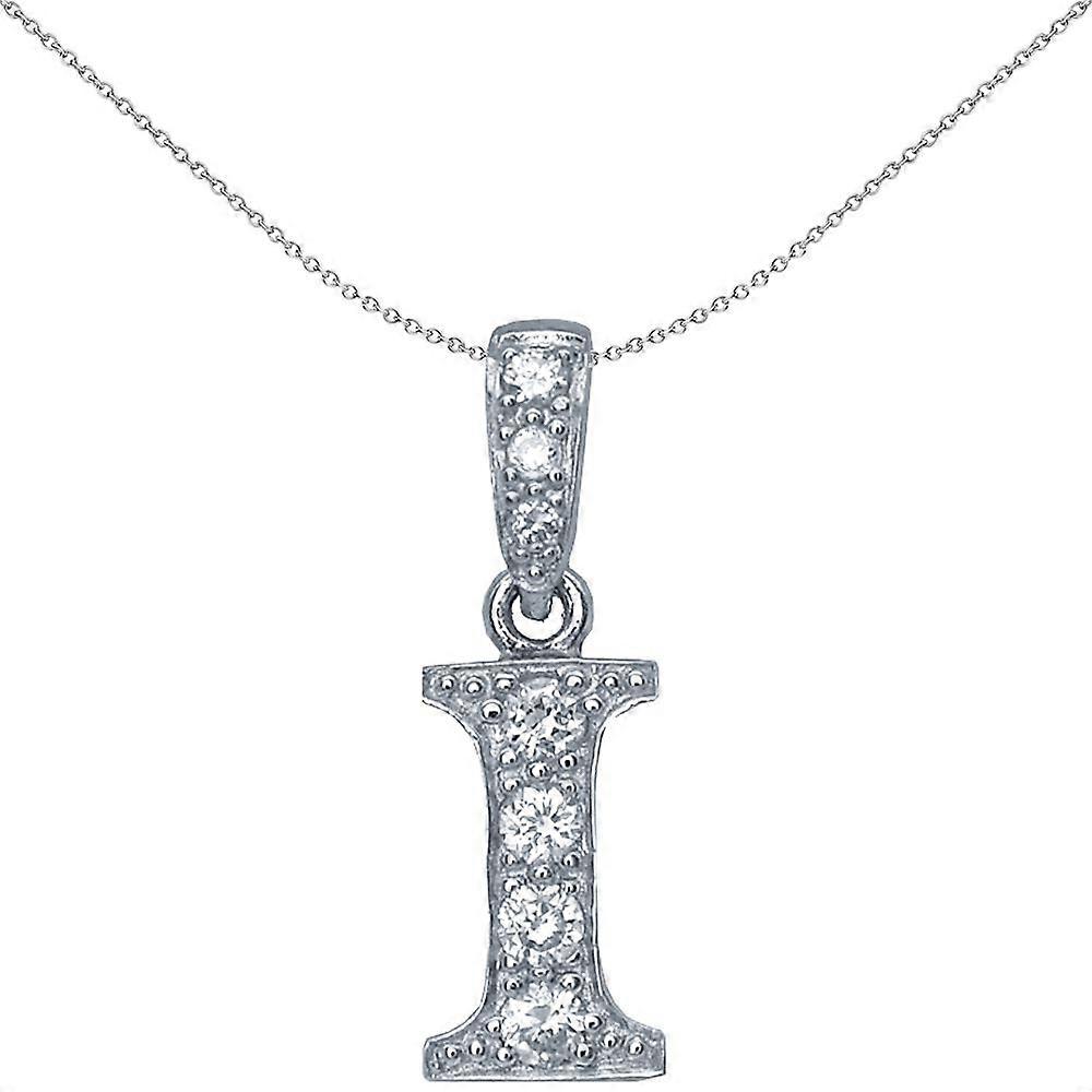 Jewelco London Sterling Silver Cubic Zirconia Letter I Initial Pendant Necklace 18 inch