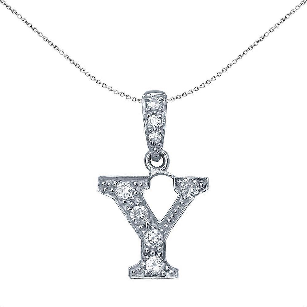 Jewelco London Sterling Silver Cubic Zirconia Letter Y Initial Pendant Necklace 18 inch