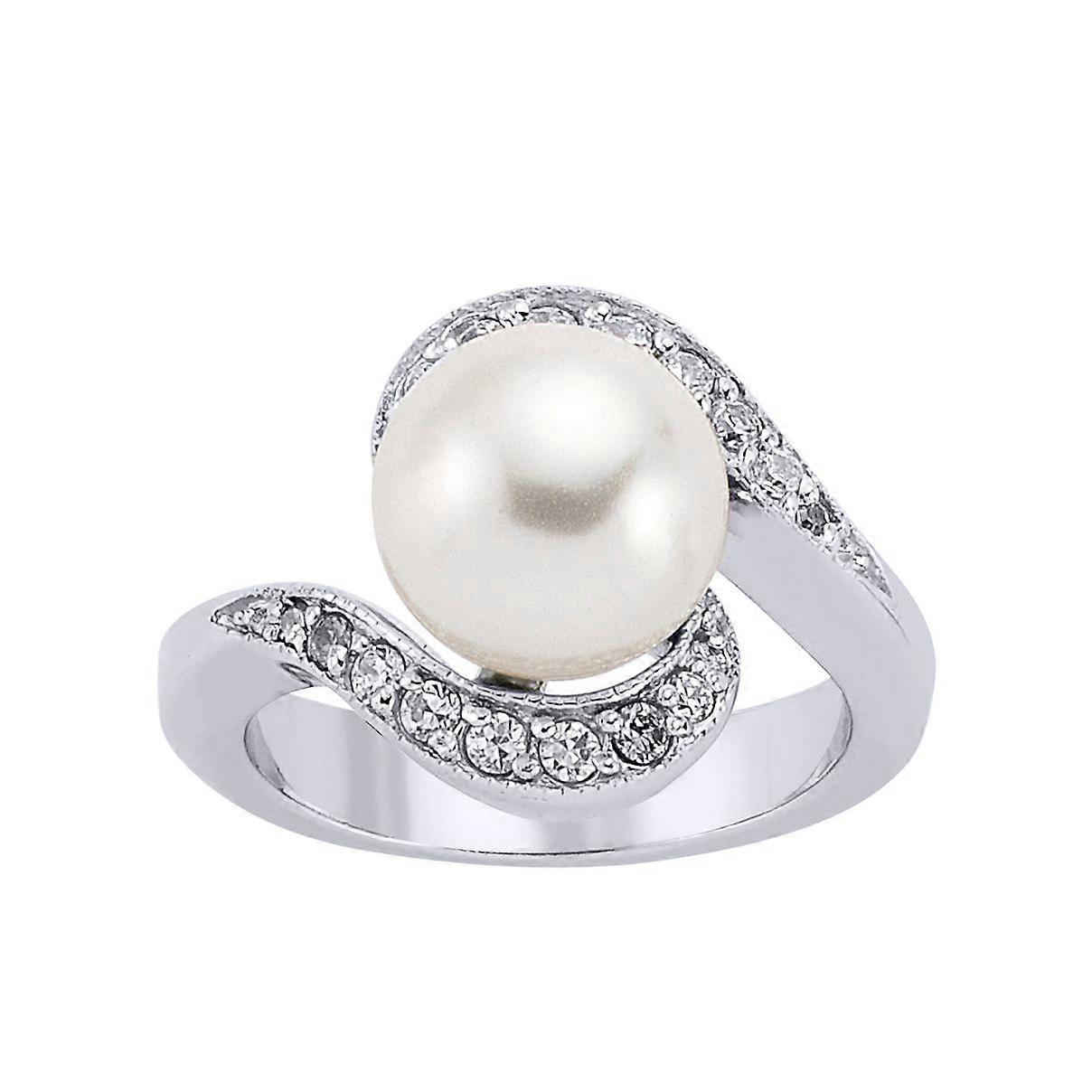 Jewelco London Sterling Silver Cubic Zirconia & Simulated Pearl Tornado Spiral Full Moon Dress Ring 11mm