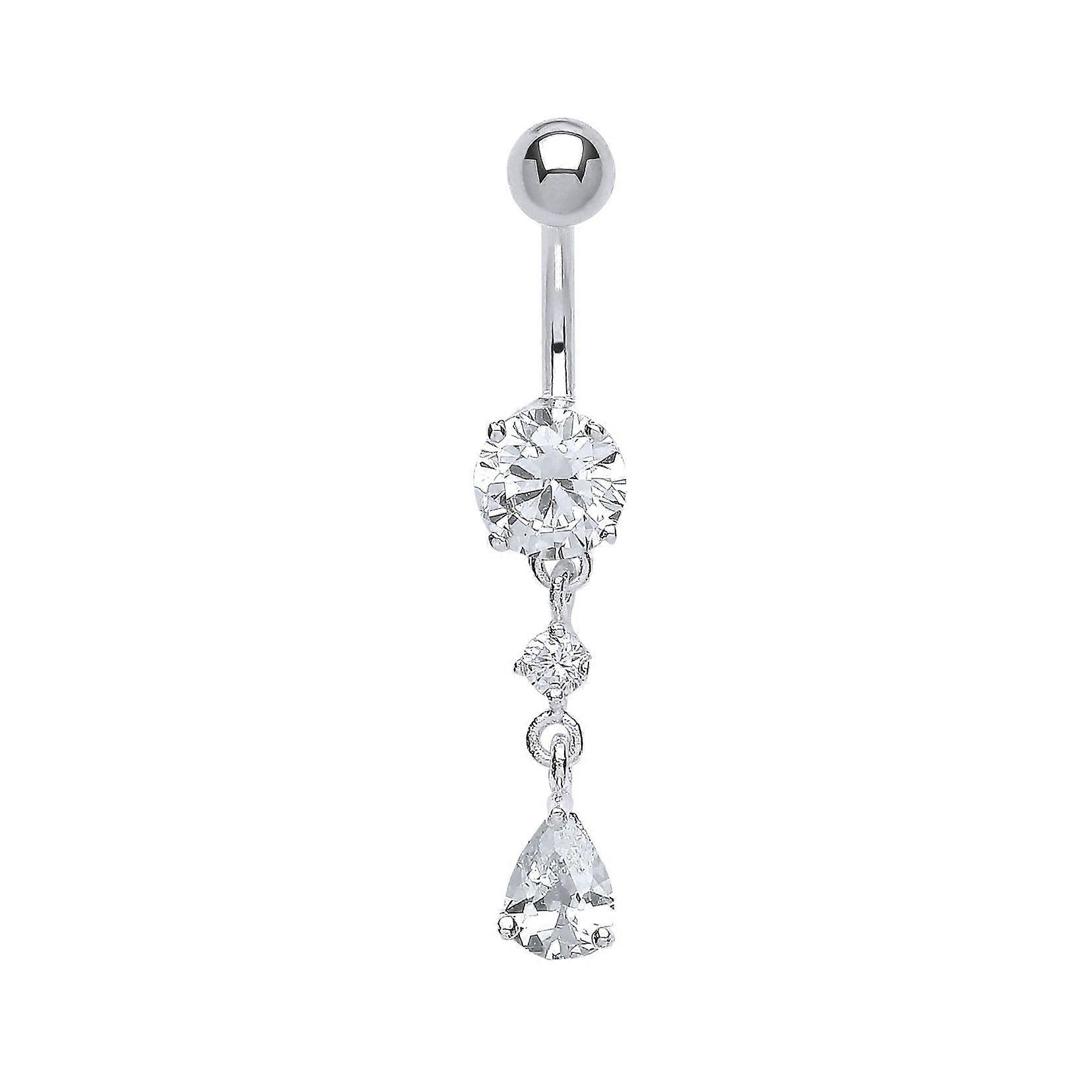 Jewelco London Sterling Silver Cubic Zirconia Tears of Joy with Stainless Steel Belly Bar & Ball