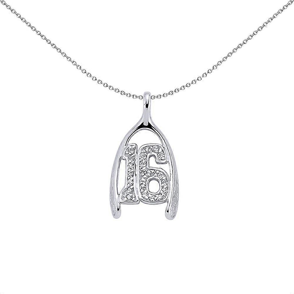 Jewelco London Sterling Silver Cubic Zirconia Wishbone 16 Pendant Necklace 18 inch