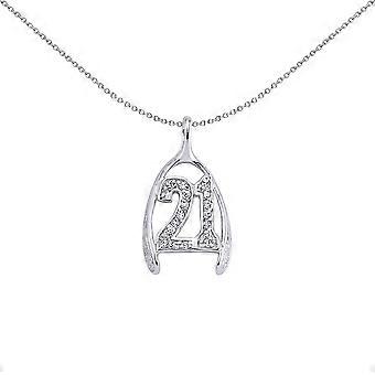 Jewelco London Sterling Silver Cubic Zirconia Wishbone 20 Pendant Necklace 18 inch
