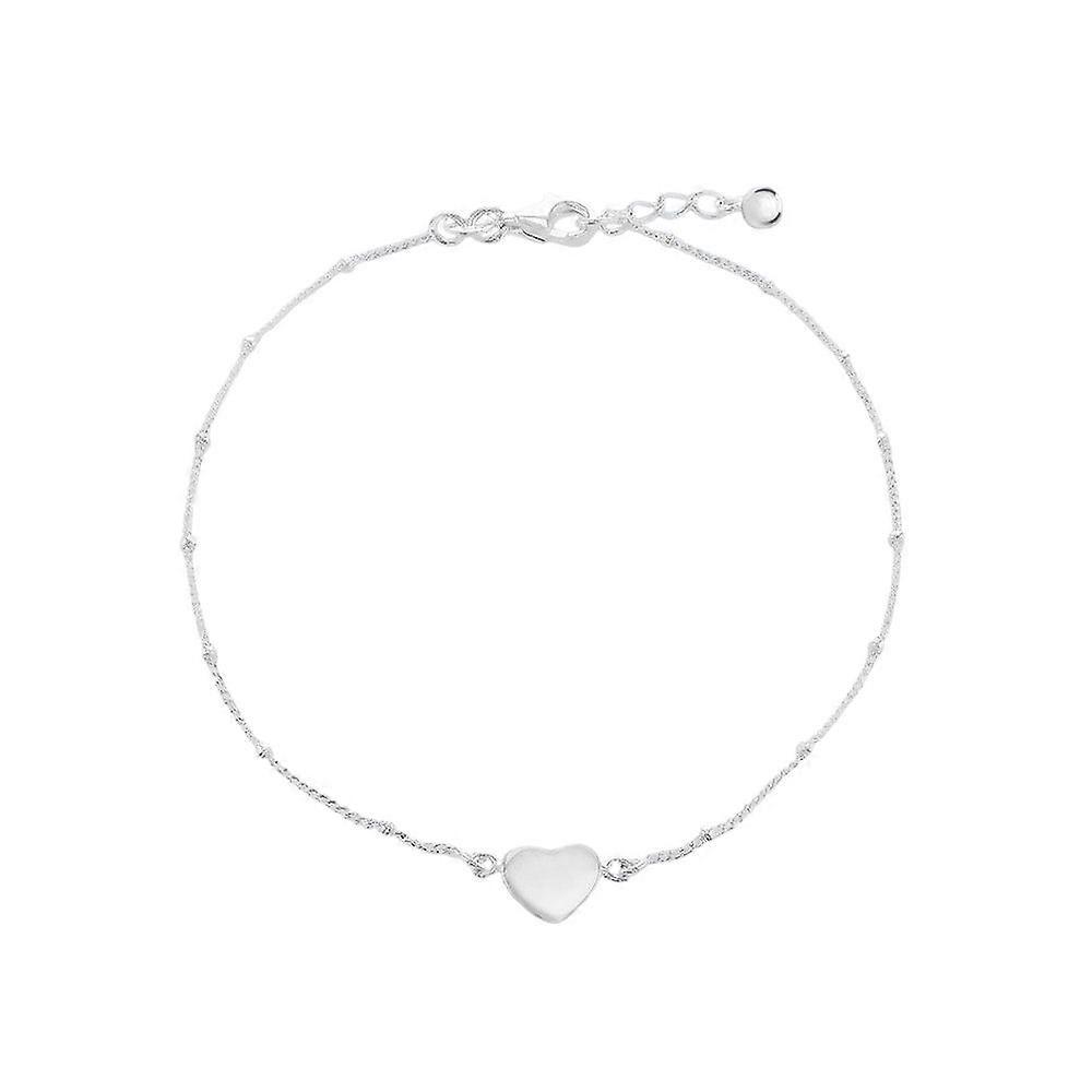 Jewelco London Sterling Silver Curb & Ball Love Heart Charm Adjustable Ankle Bracelet, 9-9.5" 23-24cm