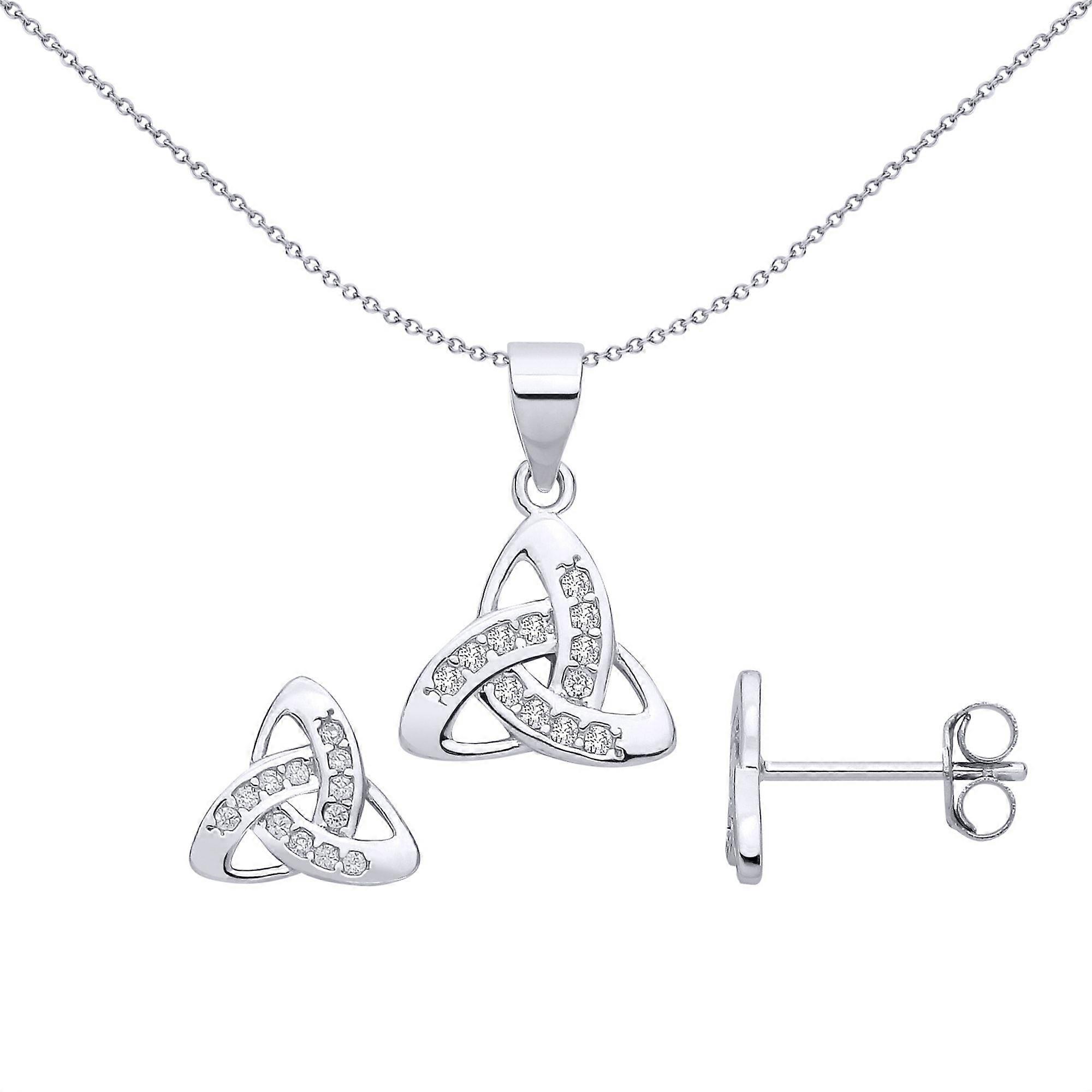 Jewelco London Sterling Silver CZ Celtic Trinity Knot Stud Earring & Pendant Set