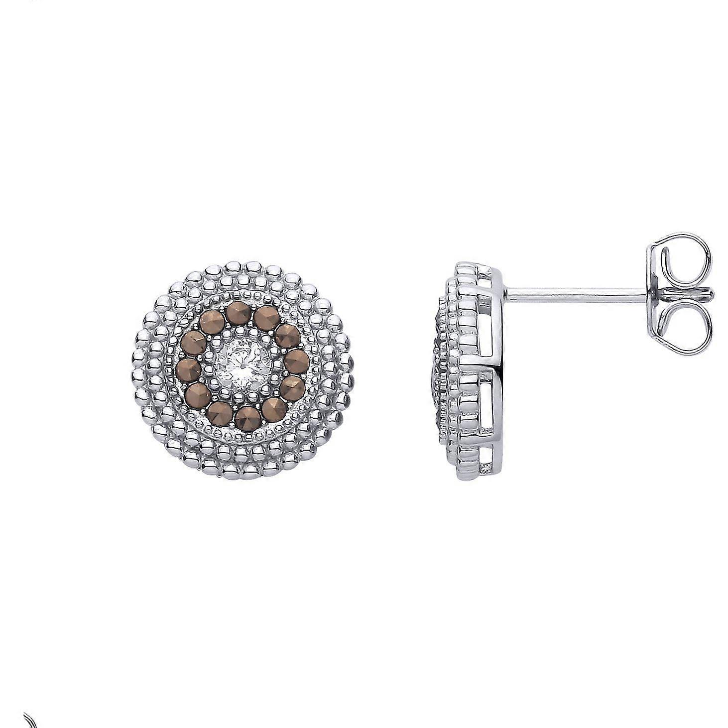 Jewelco London Sterling Silver CZ Circle Band Stud Earrings