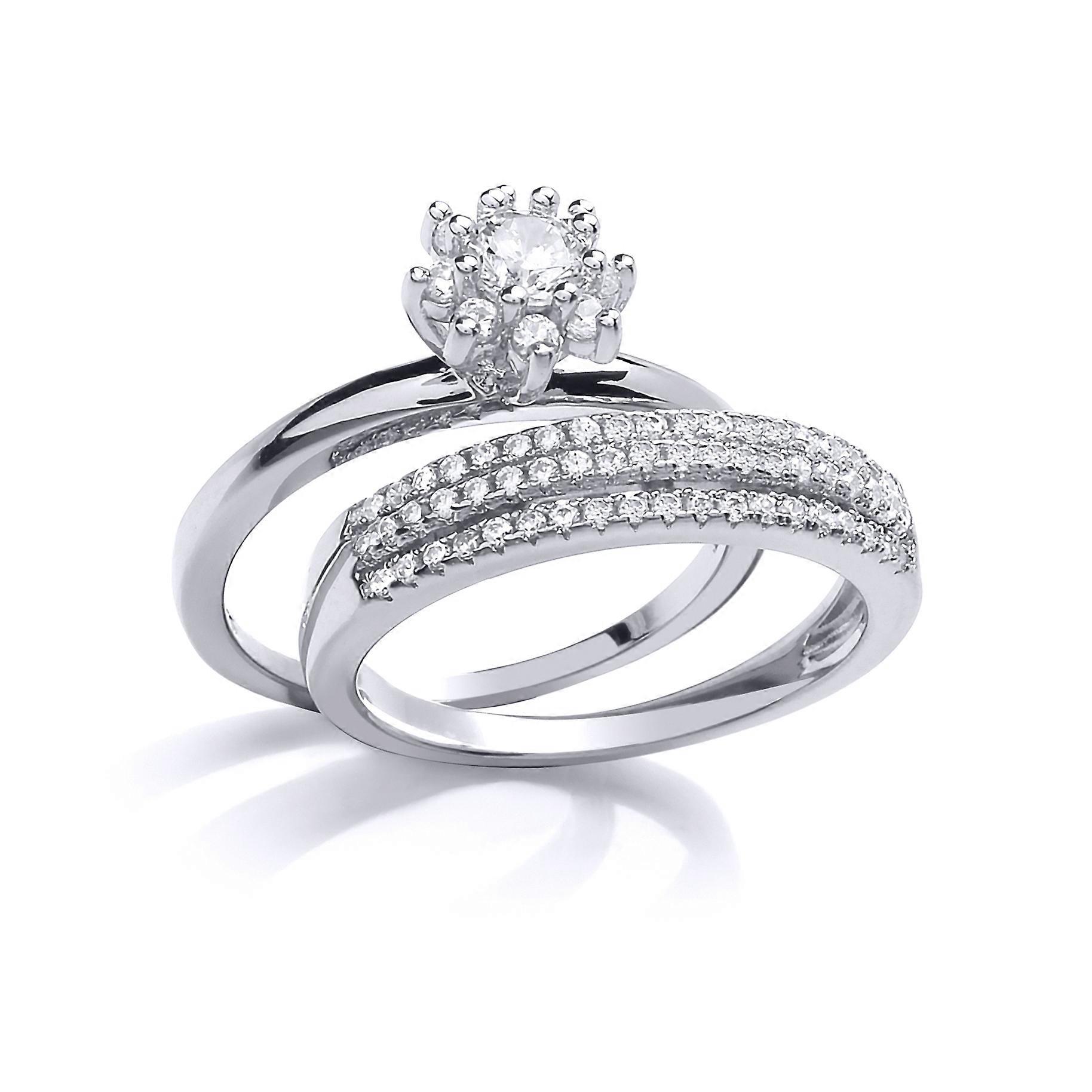 Jewelco London Sterling Silver CZ Classic Cluster Tiered Eternity Wedfit Bridal Rings Set