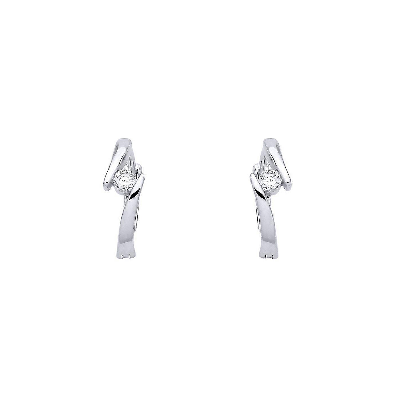 Jewelco London Sterling Silver CZ Crossover Huggie Hoop Earrings