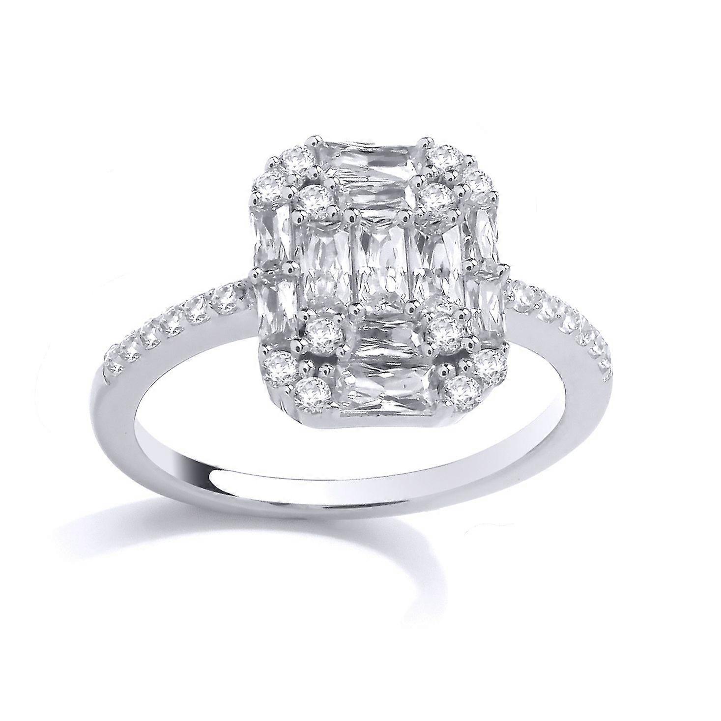 Jewelco London Sterling Silver CZ Emerald-Cut Fancy Ring