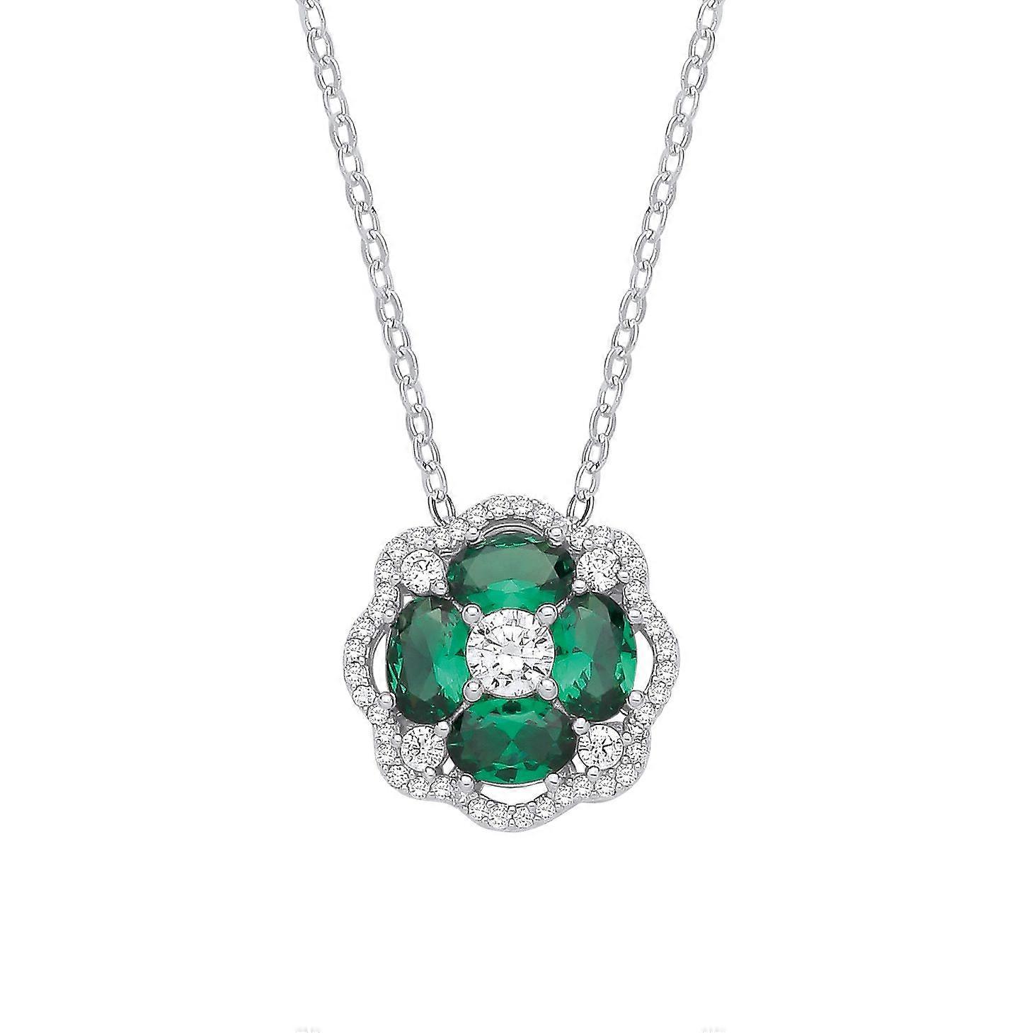 Jewelco London Sterling Silver CZ & Emerald Flower Pendant Necklace