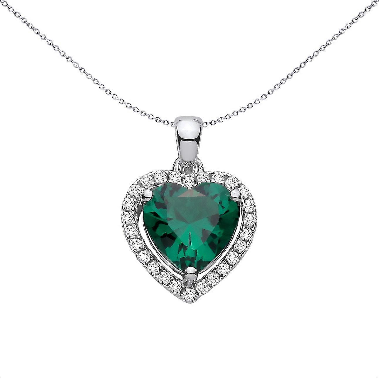 Jewelco London Sterling Silver CZ & Emerald Heart Pendant