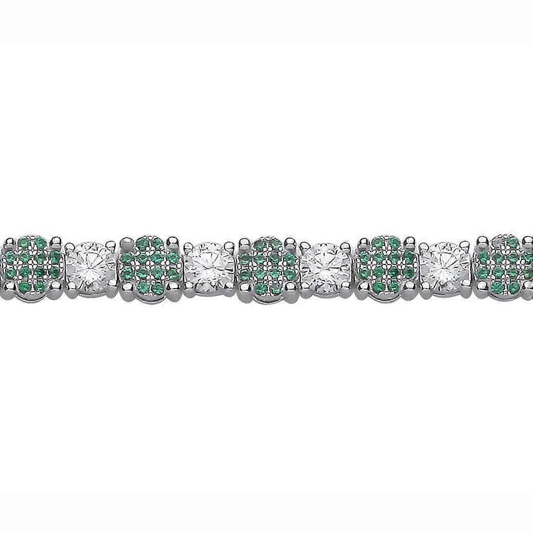 Jewelco London Sterling Silver CZ & Emerald Round Cut Tennis Bracelet