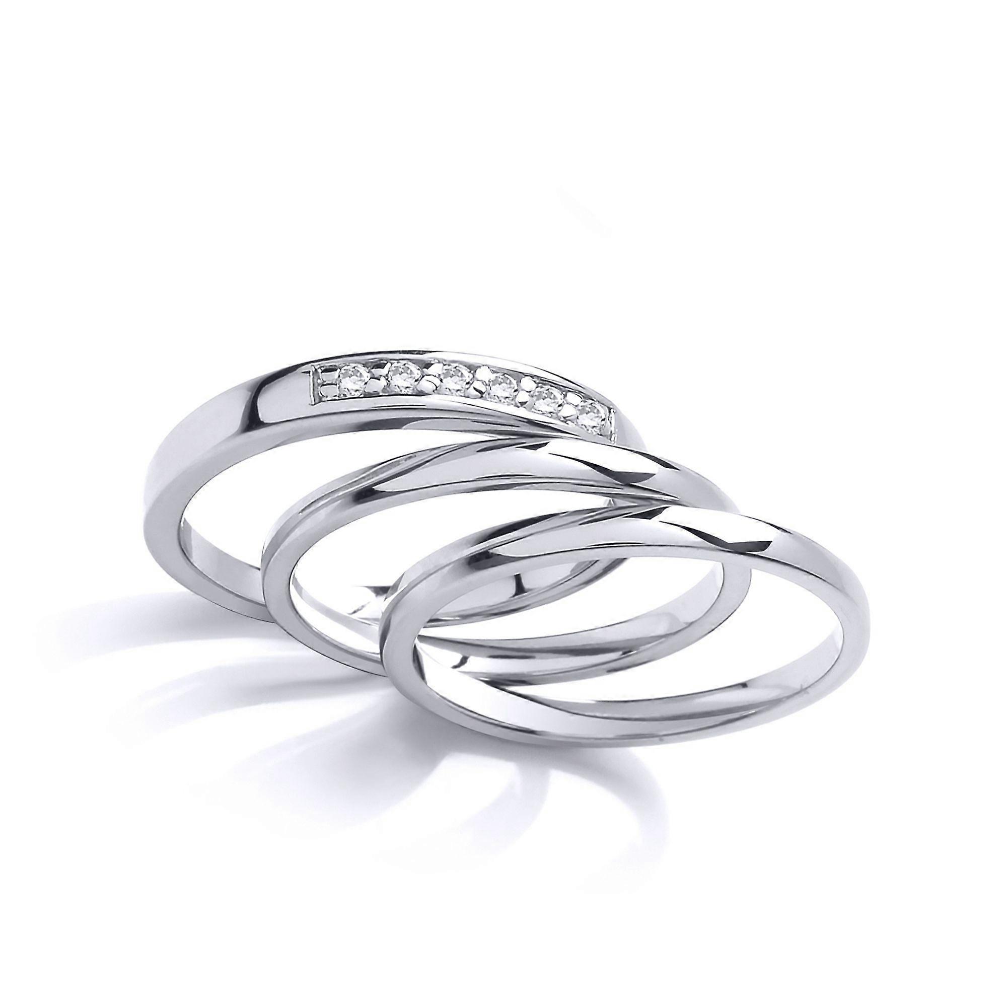 Jewelco London Sterling Silver CZ Eternity Triple Band Bridal Rings Set