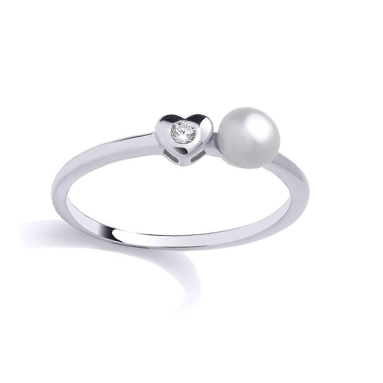 Jewelco London Sterling Silver CZ & Fresh Water Pearl Heart Ring