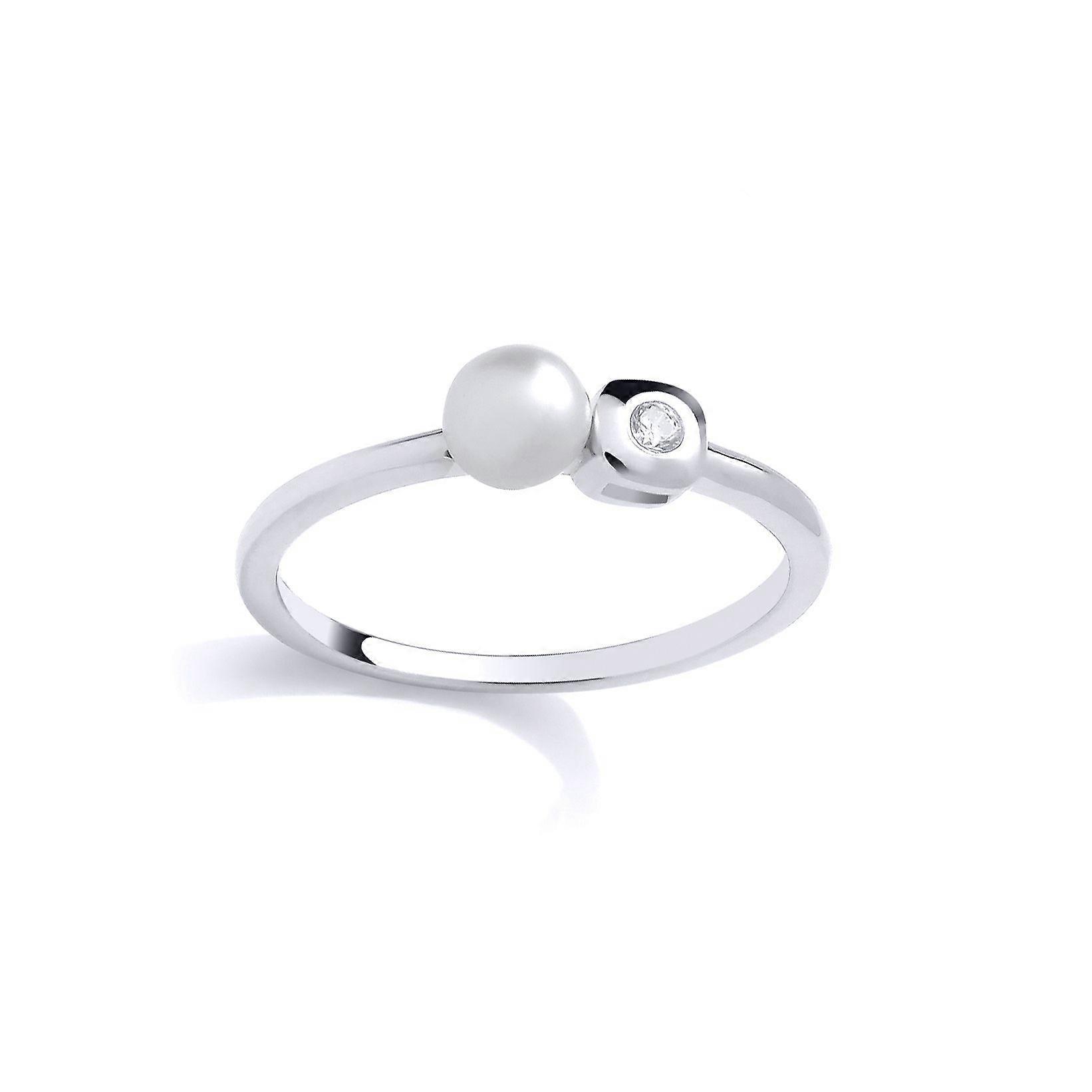 Jewelco London Sterling Silver CZ & Fresh Water Pearl Ring