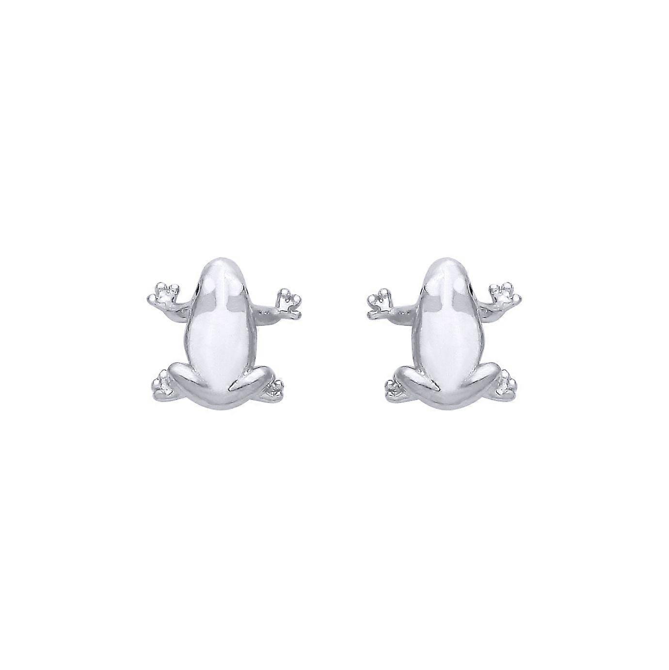 Jewelco London Sterling Silver CZ Frog Stud Earrings