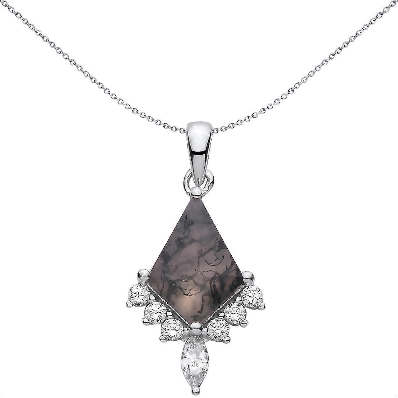 Jewelco London Sterling Silver CZ & Moss Agate Kite Cut Fancy Pendant