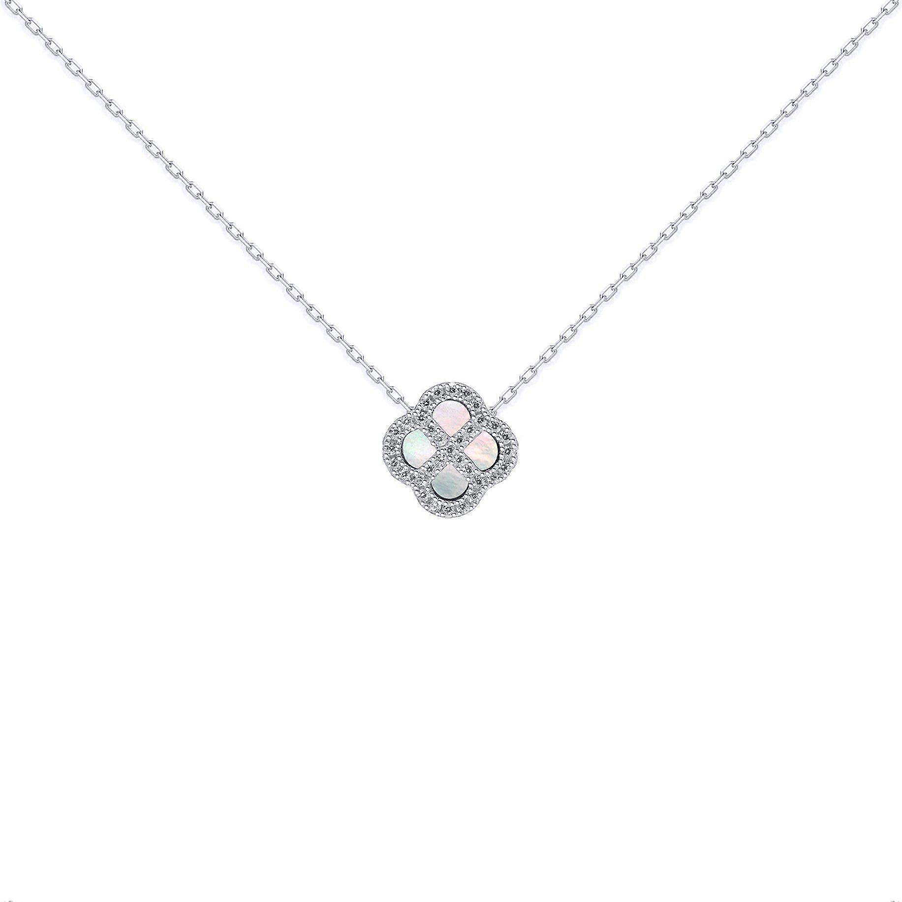 Jewelco London Sterling Silver CZ Mother of Pearl Clover Kiss Lucky Charm Necklace 16-18"