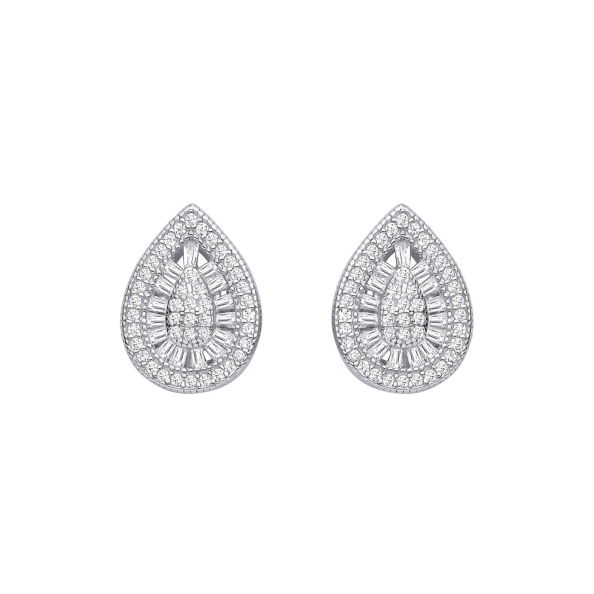 Jewelco London Sterling Silver CZ Pear Drop Cluster Stud Earrings