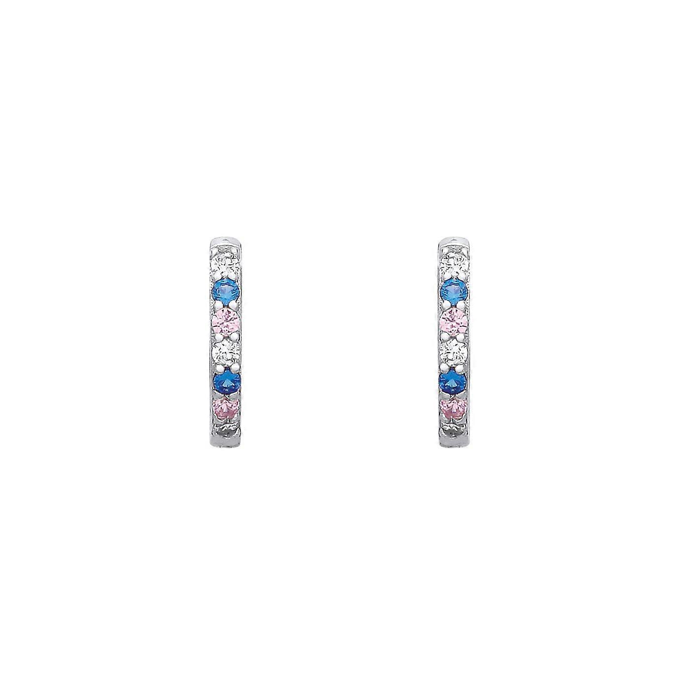 Jewelco London Sterling Silver CZ, Pink & Sapphire Huggie Earrings