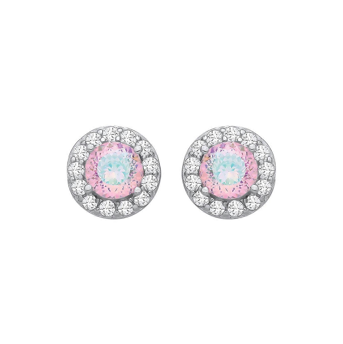 Jewelco London Sterling Silver CZ Pink With Green Birds Nest Cut Round Stud Earrings