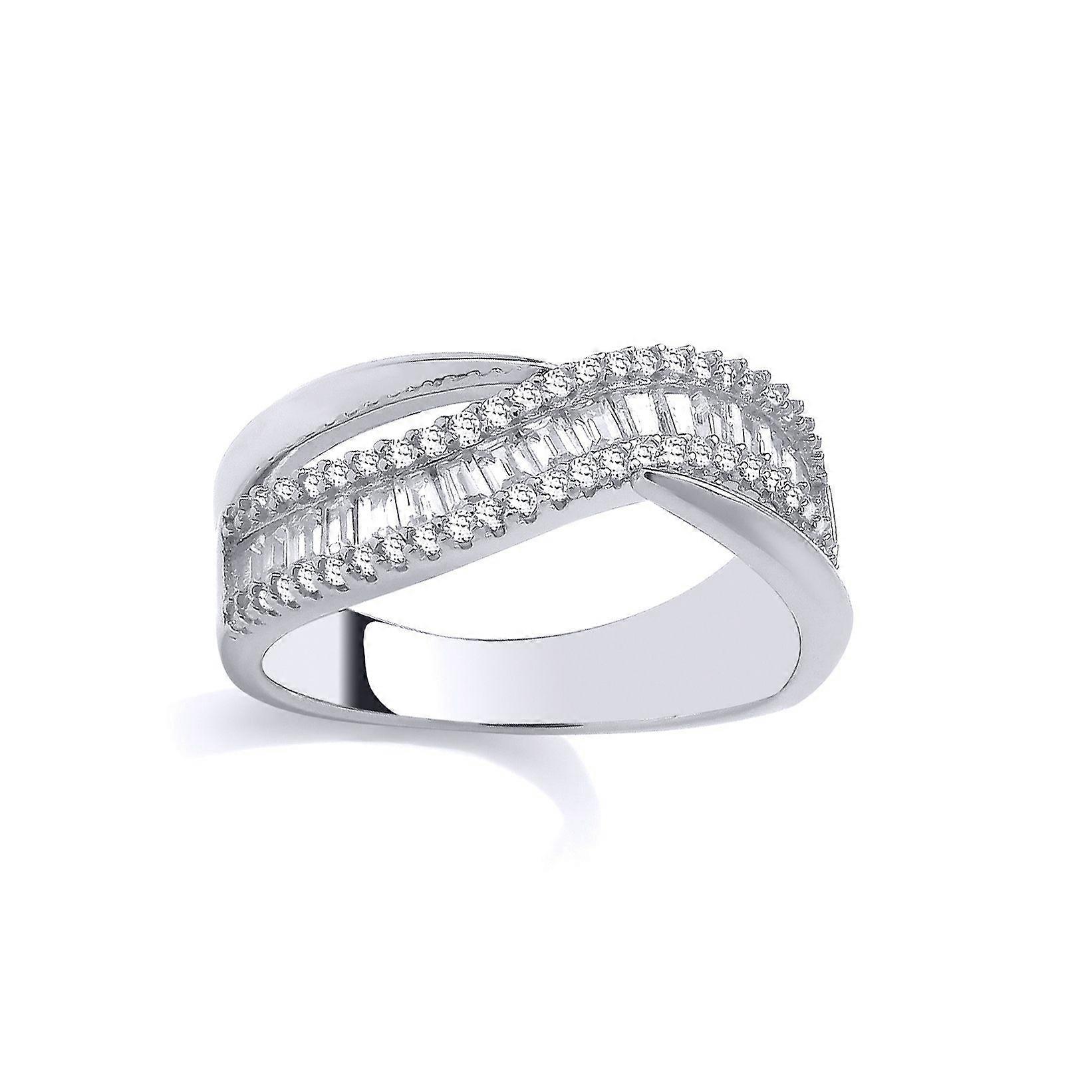 Jewelco London Sterling Silver CZ Round & Baguette Crossover Ring