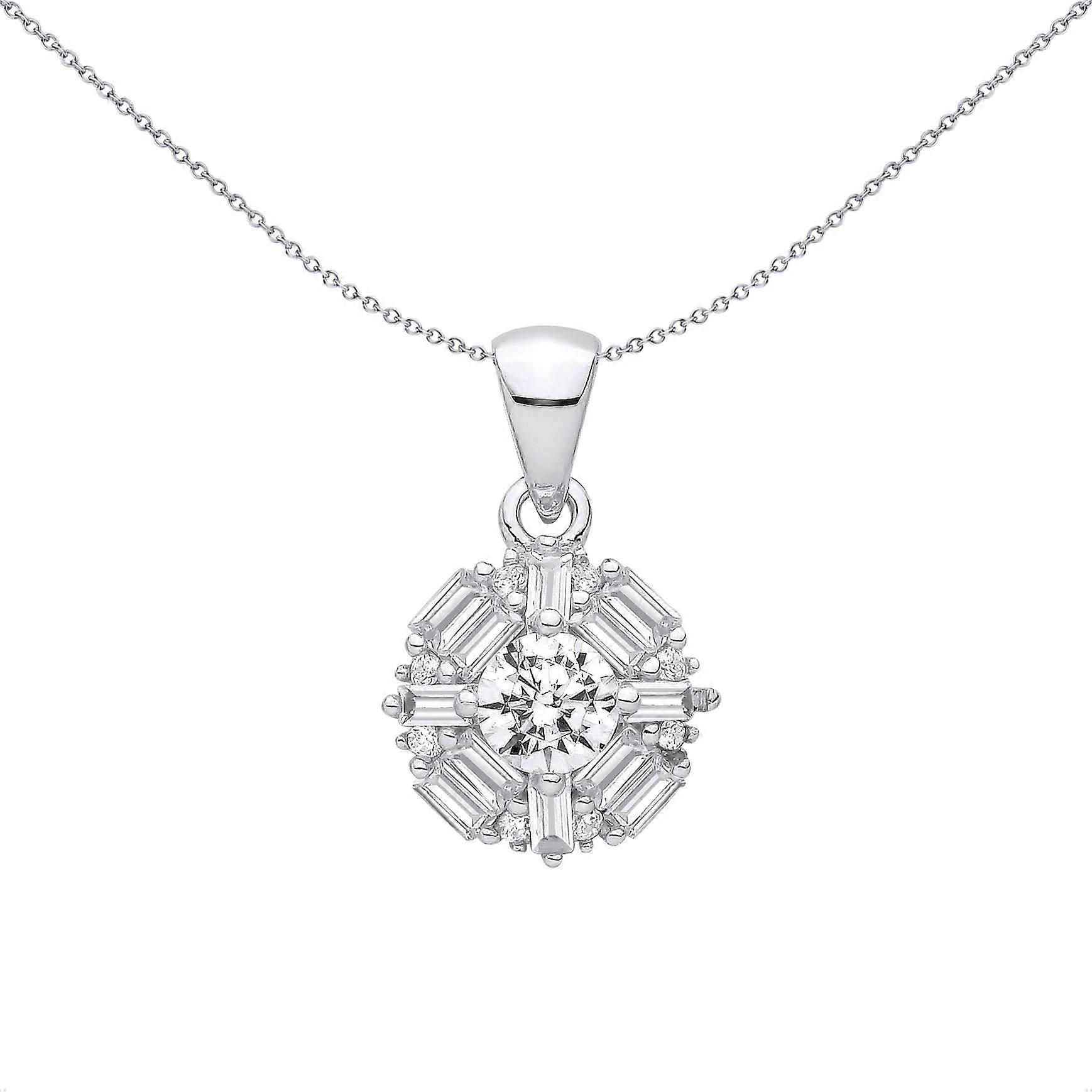 Jewelco London Sterling Silver CZ Round & Baguette Pendant
