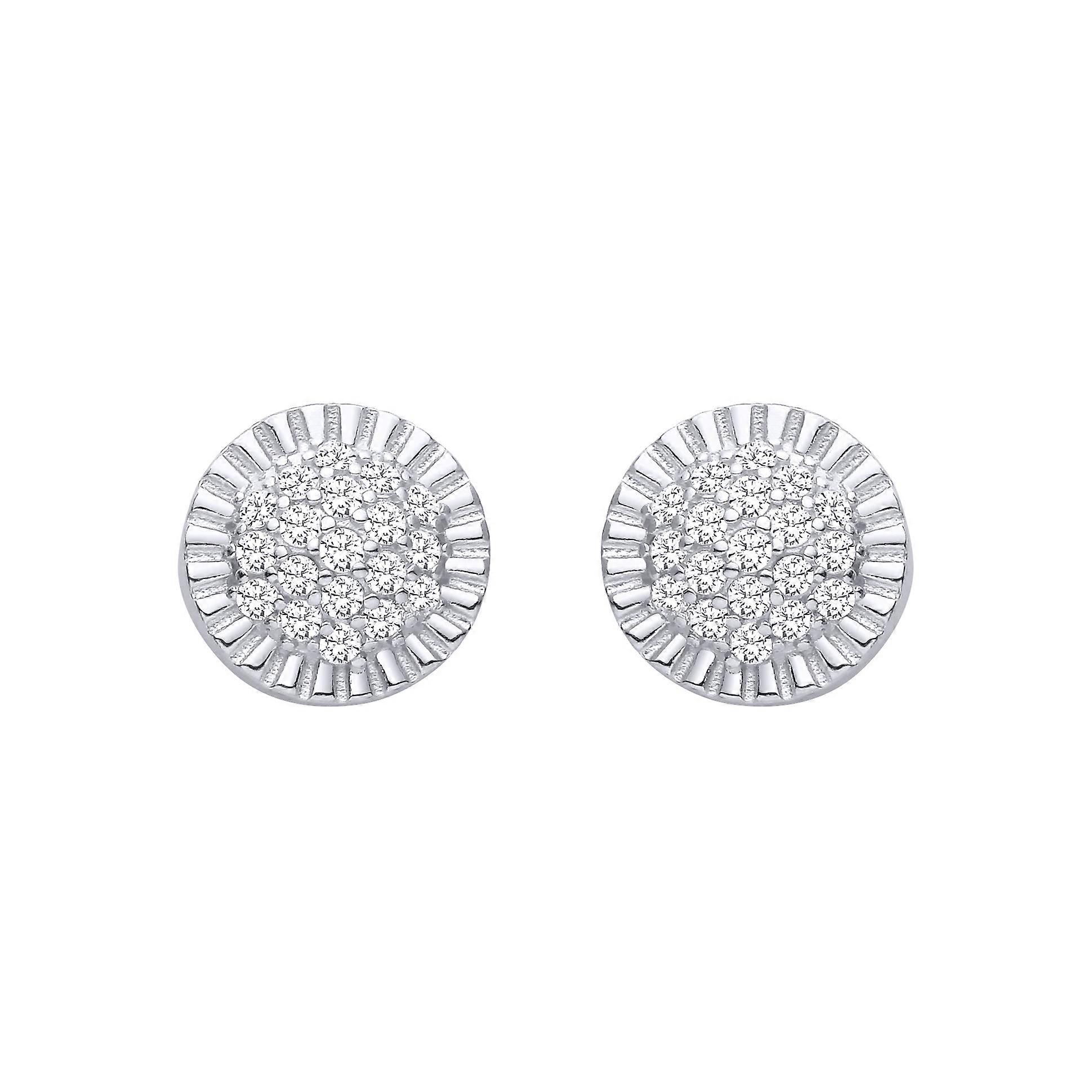 Jewelco London Sterling Silver CZ Round Cluster Stud Earrings