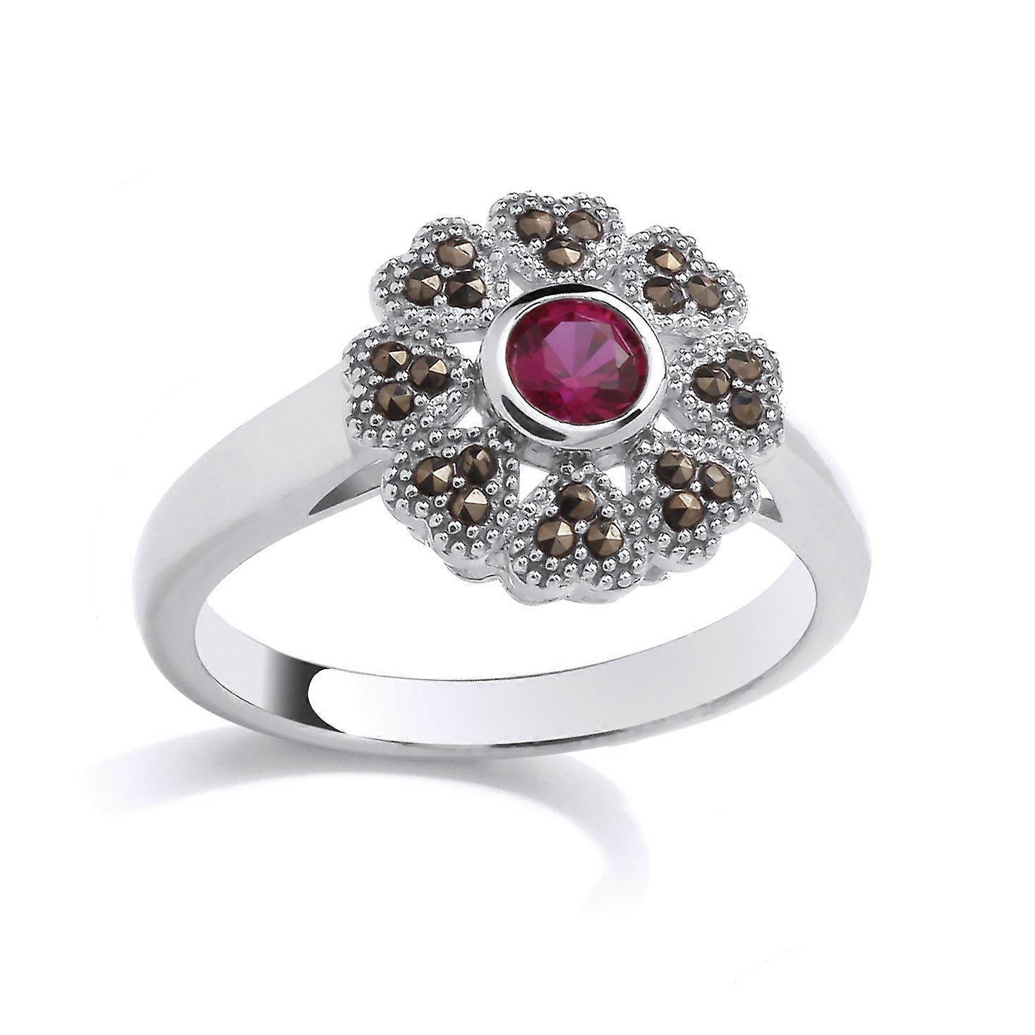 Jewelco London Sterling Silver CZ & Ruby Flower Ring
