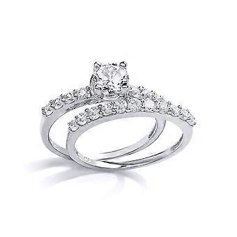 Jewelco London Sterling Silver CZ Solitaire Eternity Wedfit Bridal Rings Set
