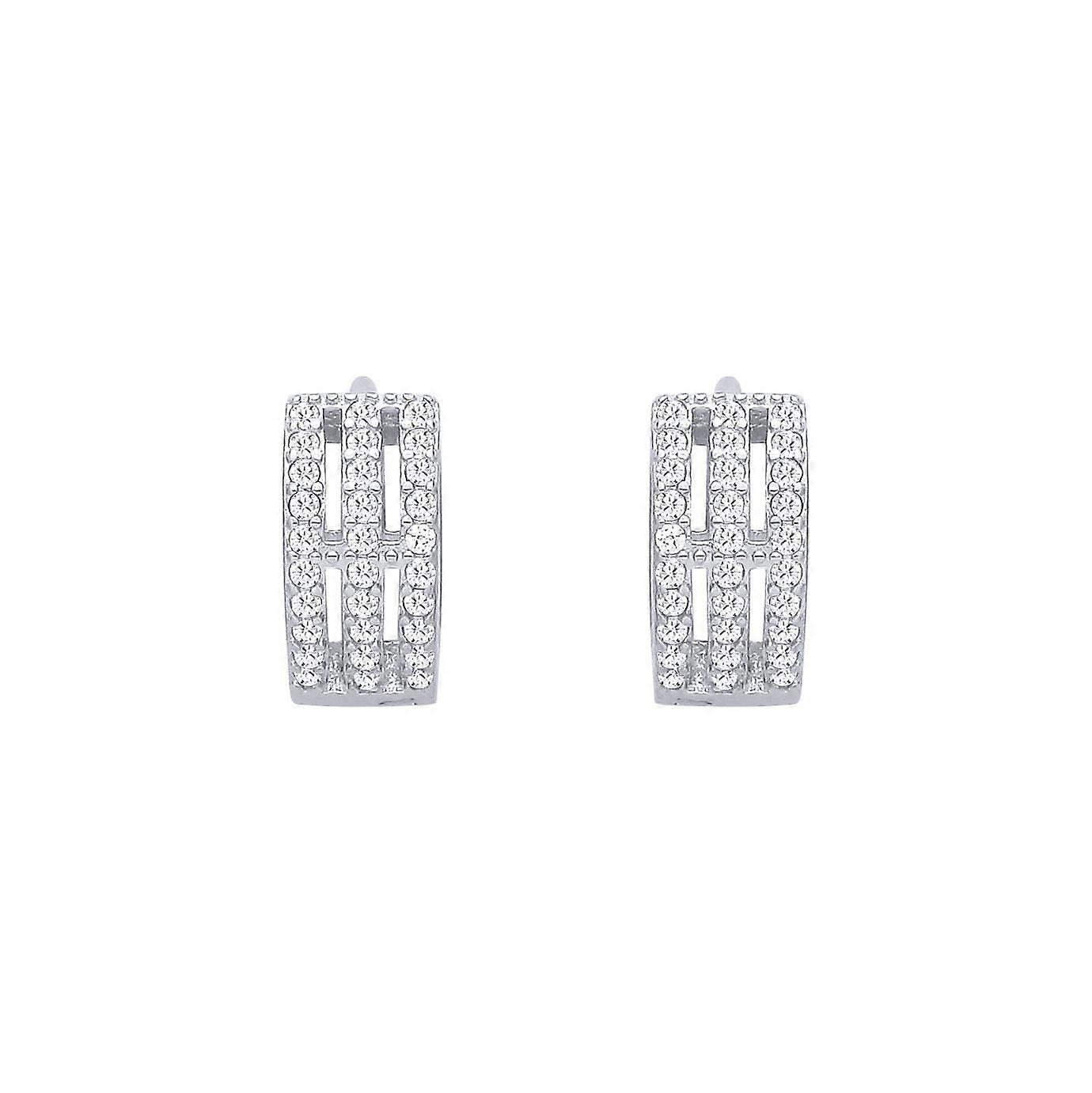 Jewelco London Sterling Silver CZ Triple Row Huggie Hoop Earrings