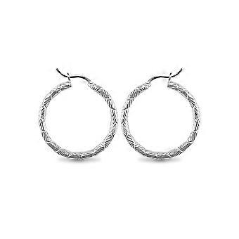 Jewelco London Sterling Silver D/C Twist Hoop Earrings - 3mm - 3.1cm