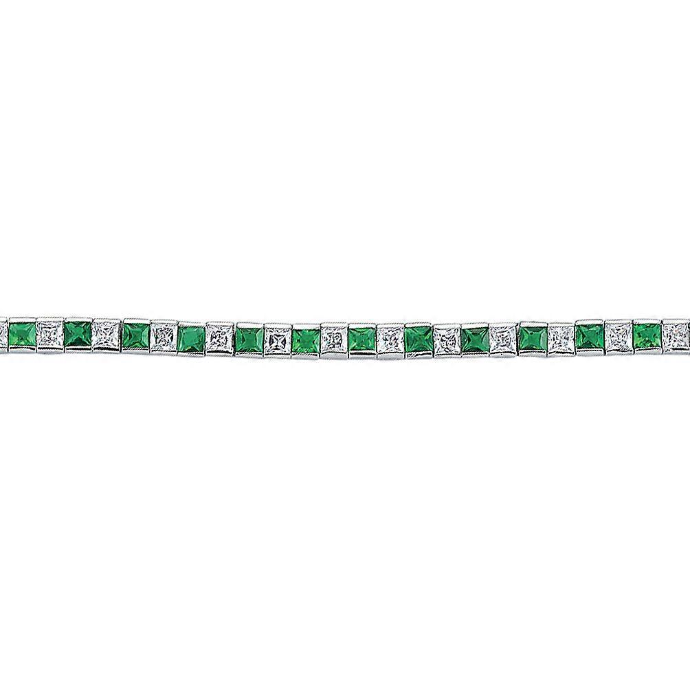 Jewelco London Sterling Silver Emerald-Green Princess Cut Cubic Zirconia Alternating Eternity Tennis Bracelet 4mm
