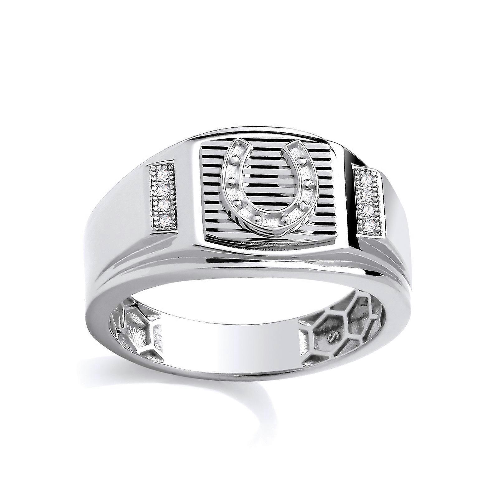 Jewelco London Sterling Silver Gents CZ Horseshoe Ring