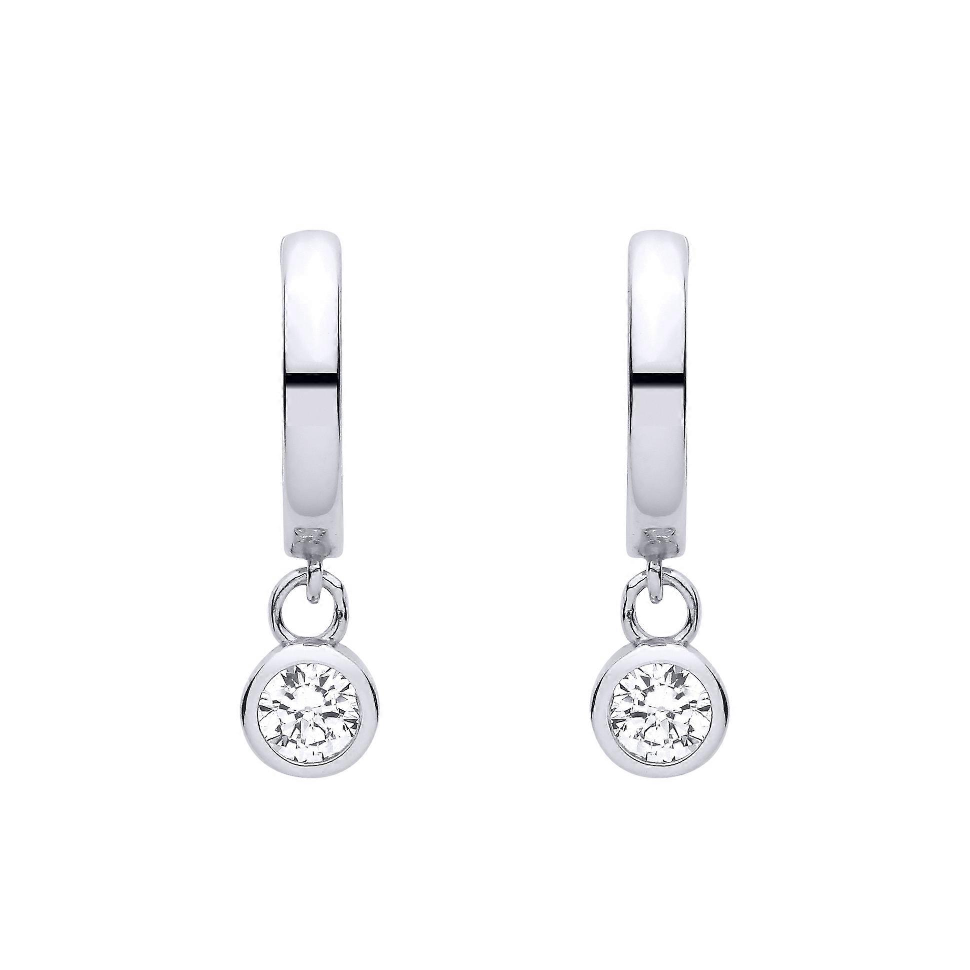 Jewelco London Sterling Silver Huggie Hoop CZ Drop Earrings