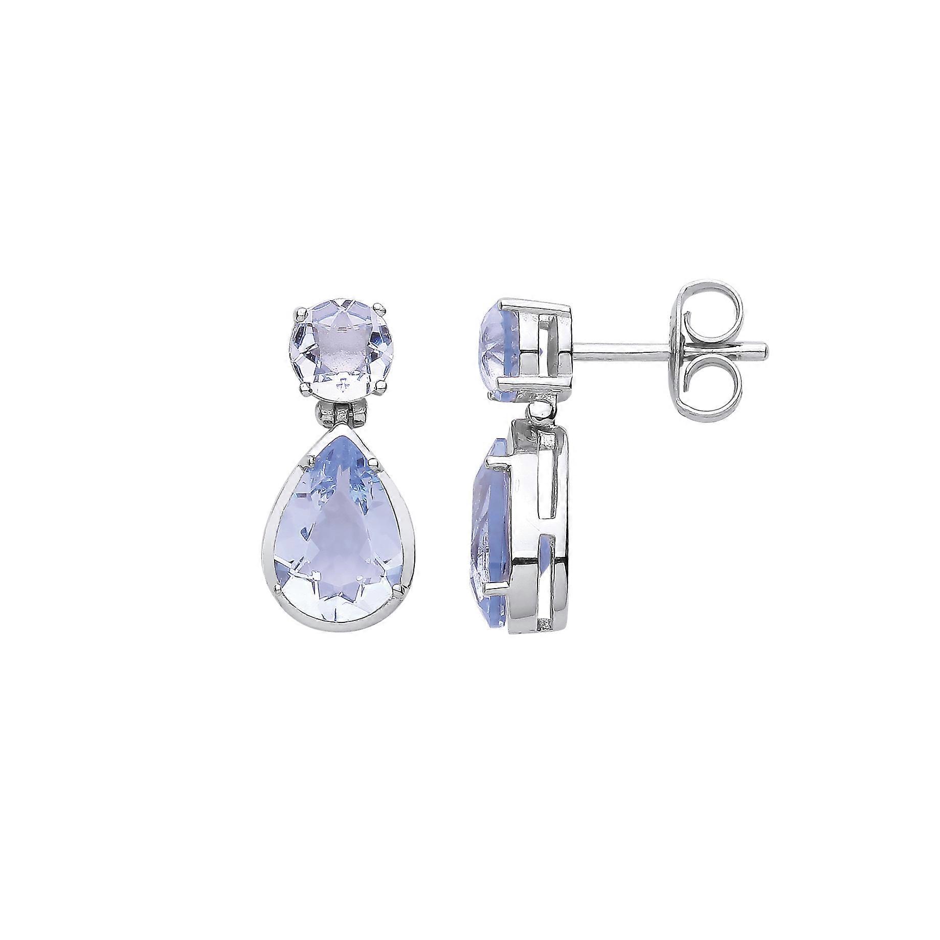 Jewelco London Sterling Silver Lilac Pear CZ Icy Raindrop Double Solitaire Toi et Moi Drop Earrings