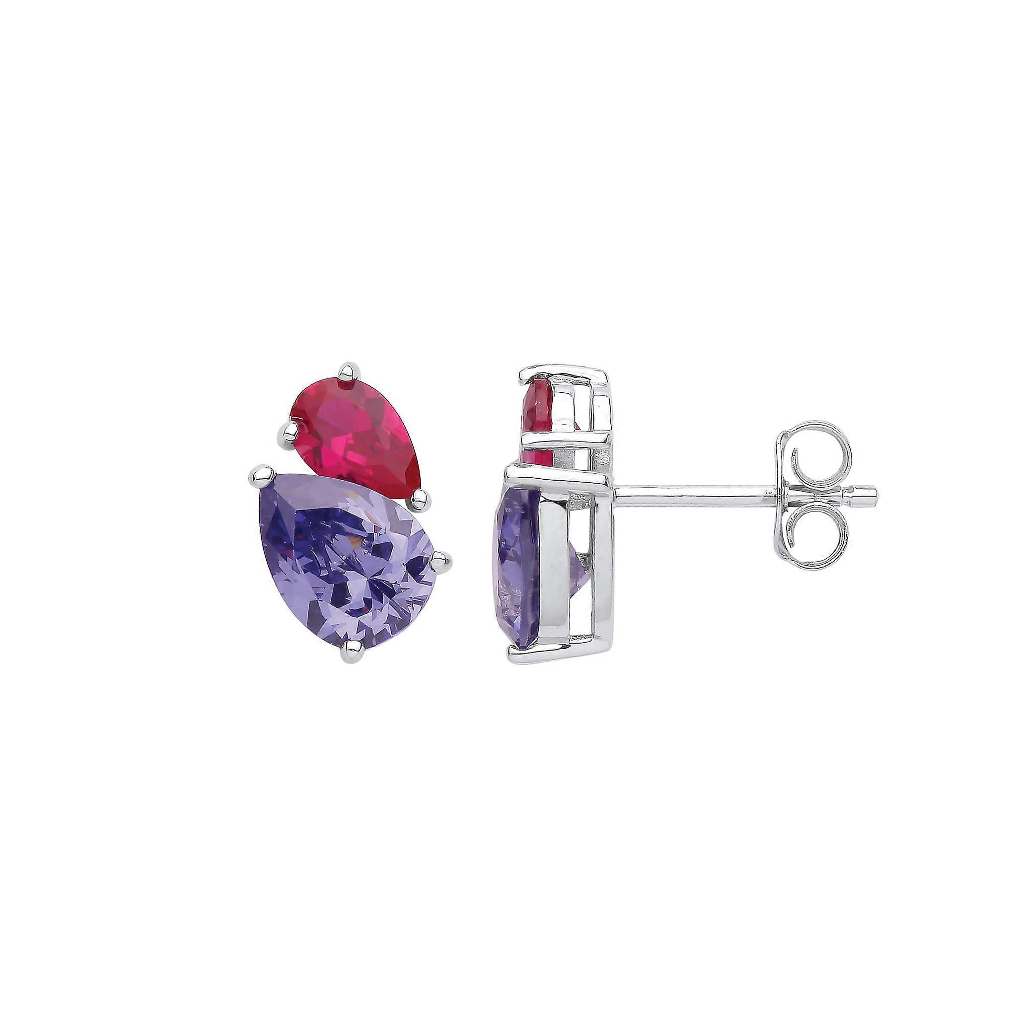 Jewelco London Sterling Silver Lilac Red Pear CZ Passing Ships Toi et Moi Stud Earrings