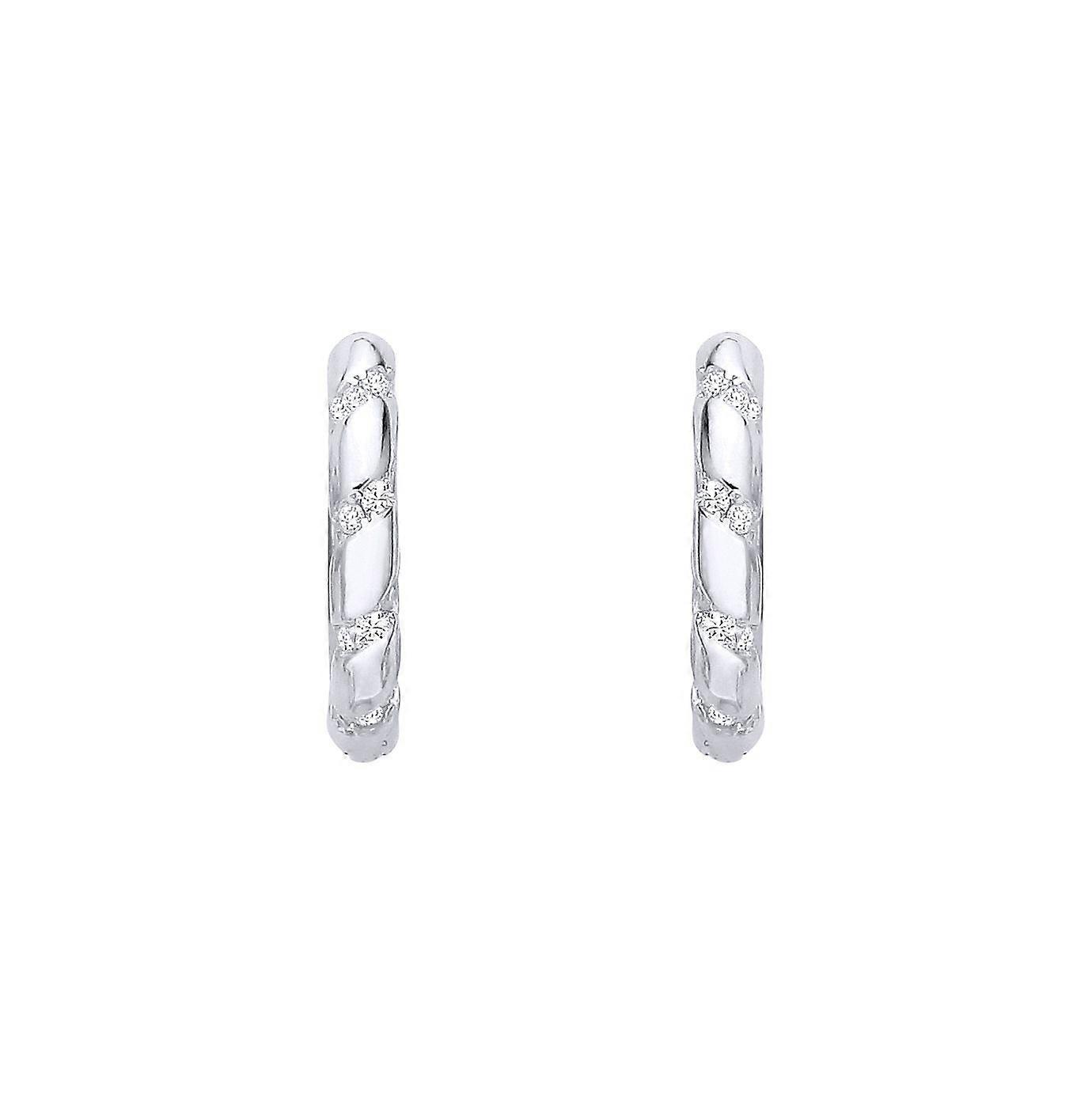 Jewelco London Sterling Silver Moondust Twist Huggie Hoop Earrings
