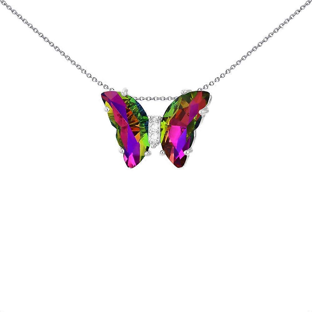 Jewelco London Sterling Silver Mystic Rainbow Half Moon Glass & Cubic Zirconia Multicolour Butterfly Slider Charm Pendant