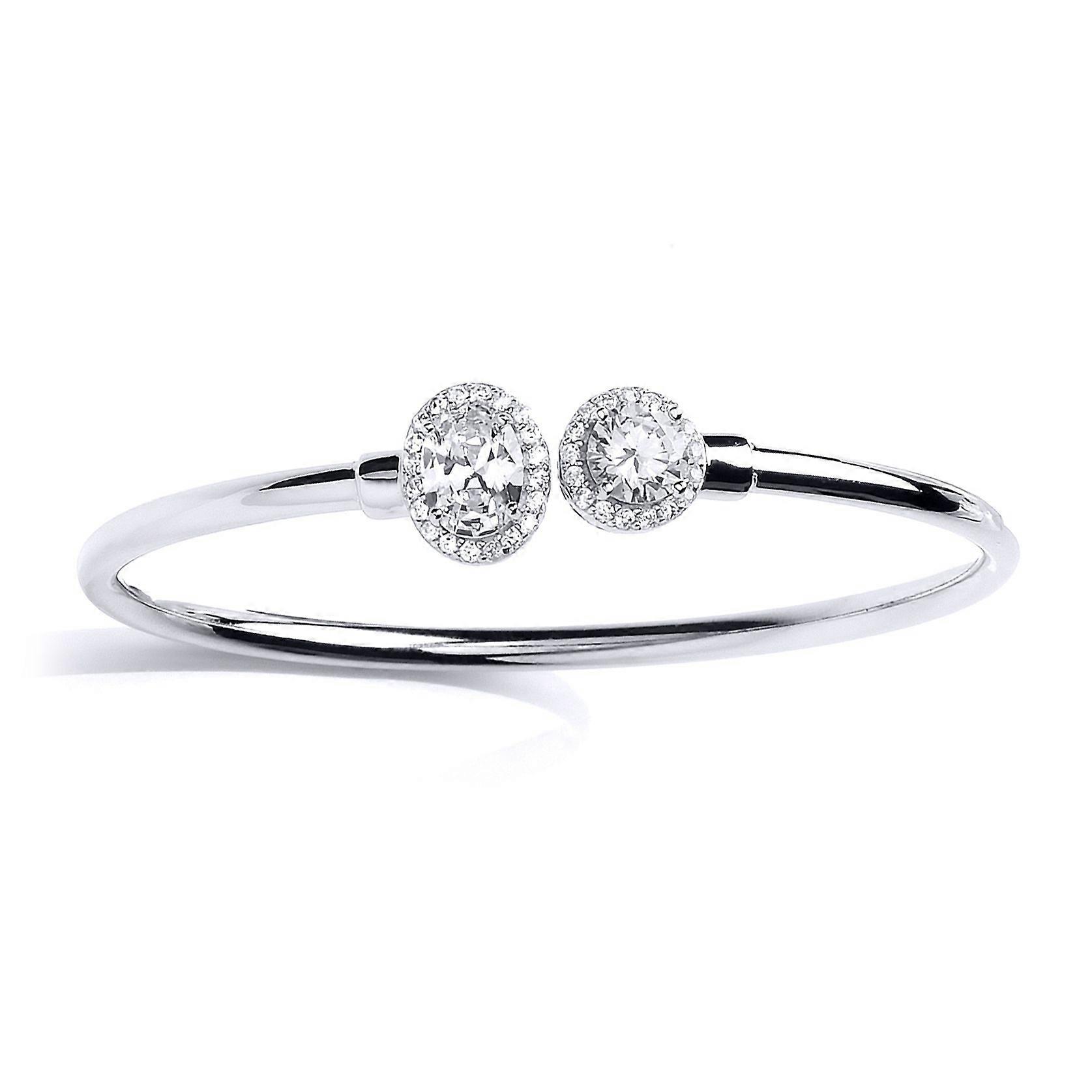 Jewelco London Sterling Silver oval Cubic zirconia Halo Torque Toi et Moi Bangle Bracelet 13mm