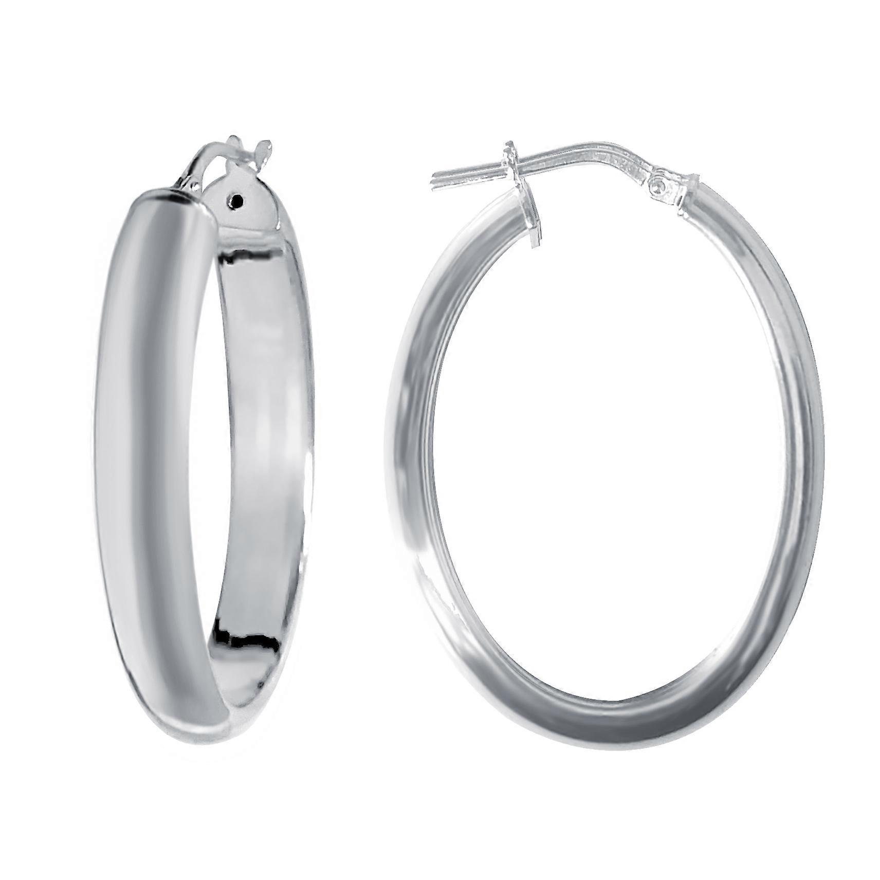 Jewelco London Sterling Silver Oval D-Shape Hoop Earrings
