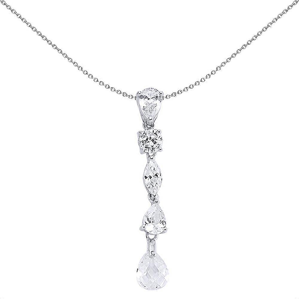 Jewelco London Sterling Silver Pear, Marquise and Round Brilliant Cubic Zirconia Tears of Joy Charm Necklace 18 inch