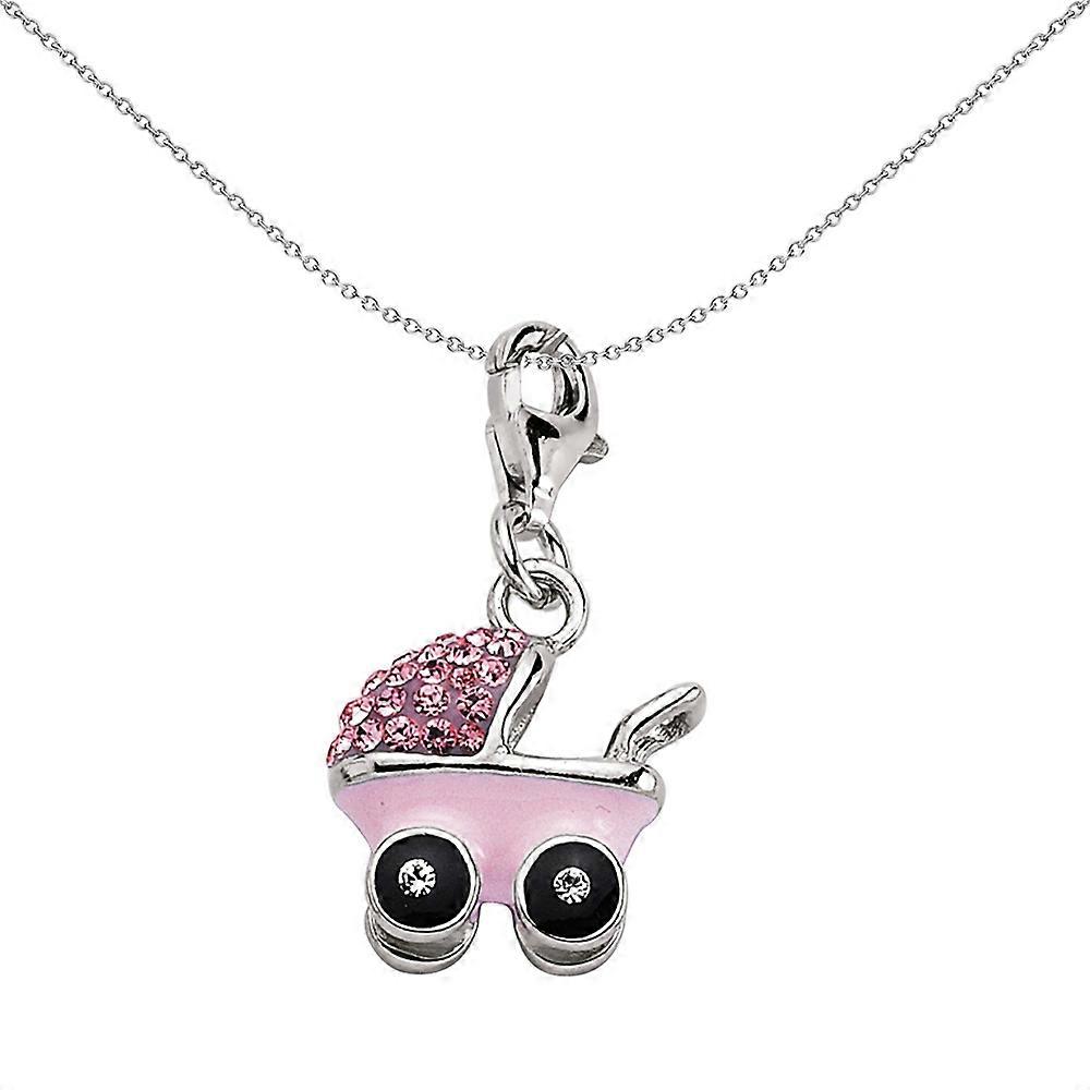 Jewelco London Sterling Silver Pink Crystal Buggie Pram Charm