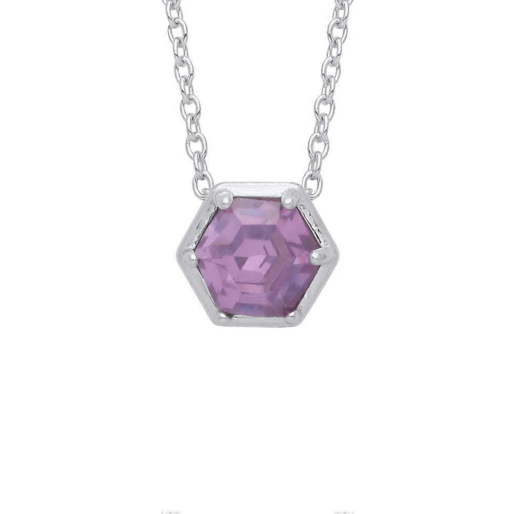 Jewelco London Sterling Silver Purple Hexagon Honeycomb CZ Bezel Solitaire Lavalier Necklace 16 + 2 inch