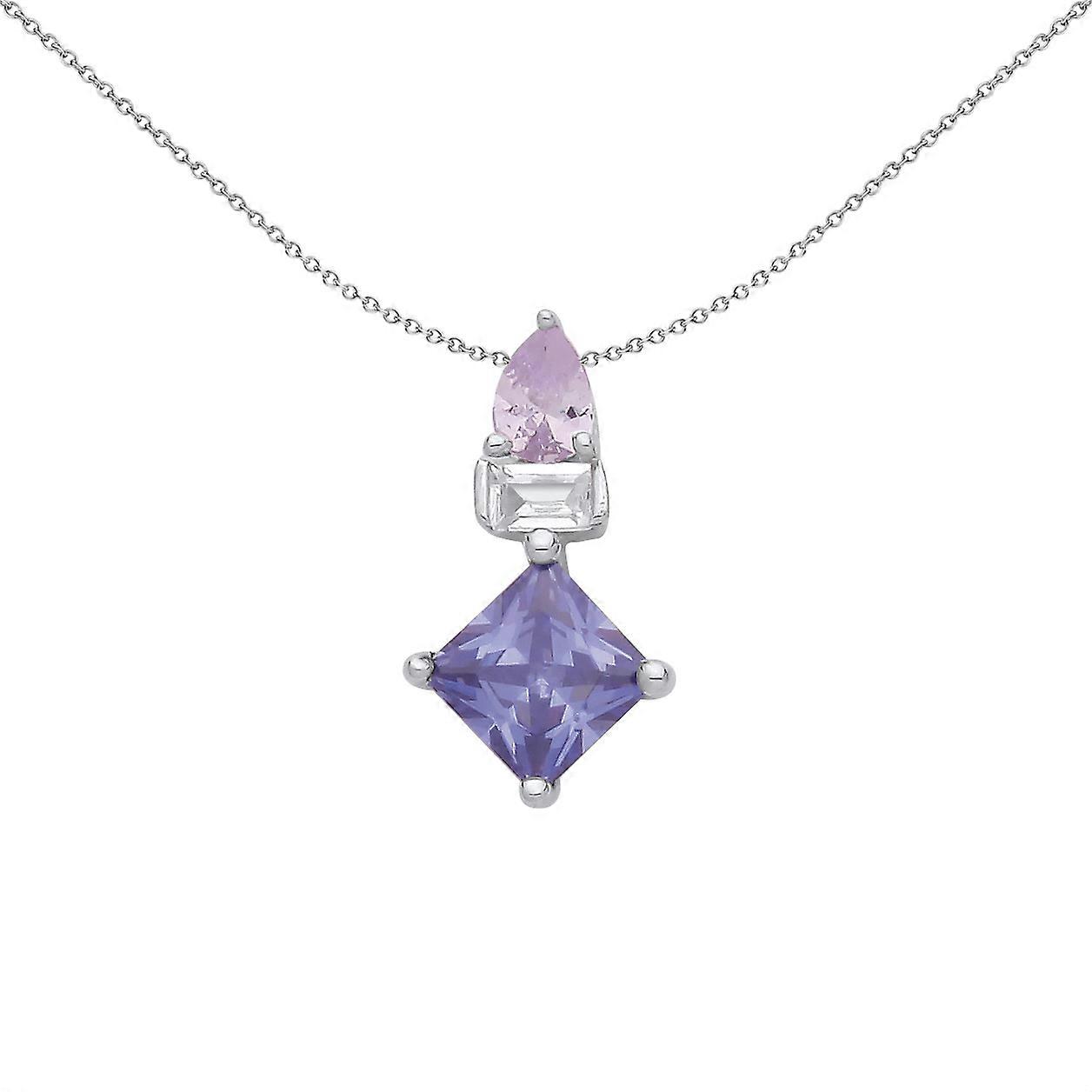 Jewelco London Sterling Silver Purple Lilac Princess Pear CZ Bishop Mitre Trilogy Toi et Moi Pendant Necklace 18 inch