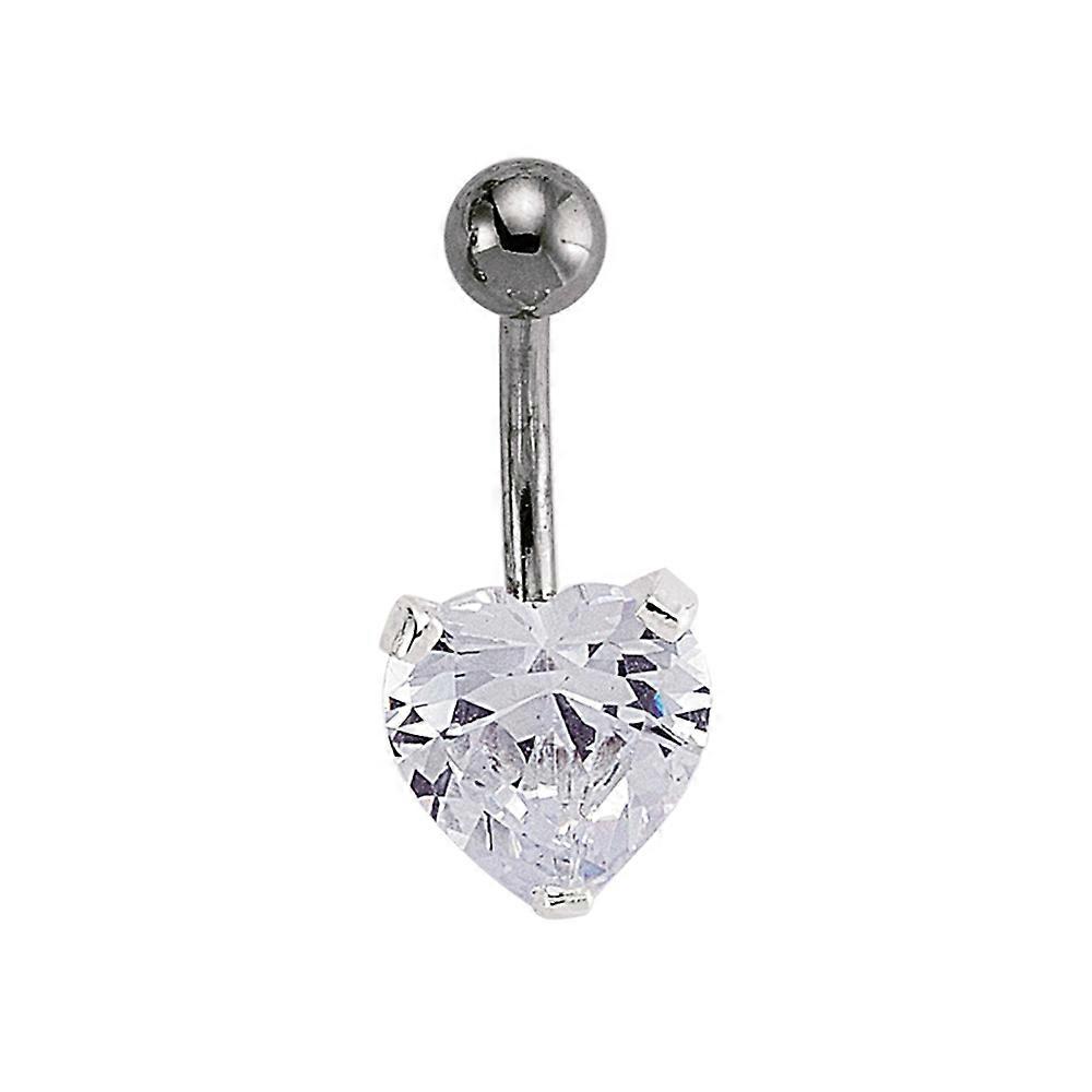 Jewelco London Sterling Silver Solitaire Cubic Zirconia Love Heart with Stainless Steel Belly Bar & Ball