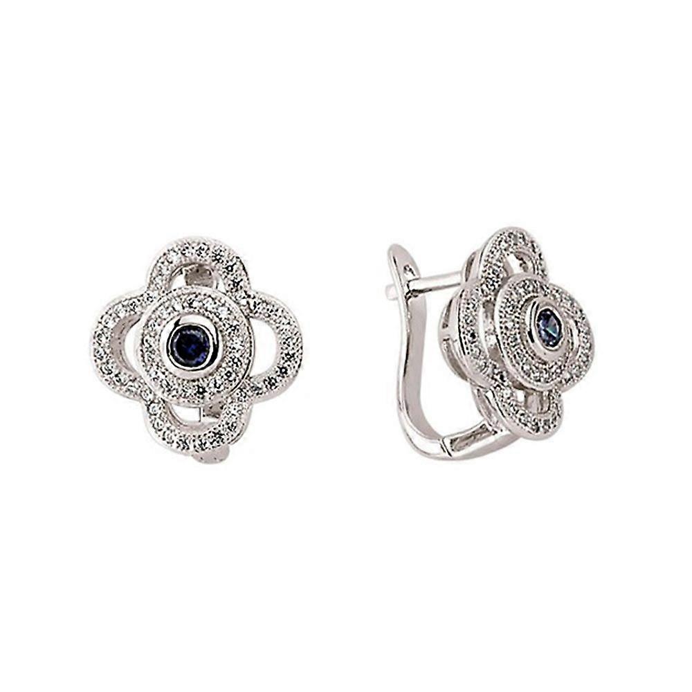 Jewelco London Sterling Silver Tanzanite-Violet Cubic Zirconia Clover Halo Hoop Earrings mm