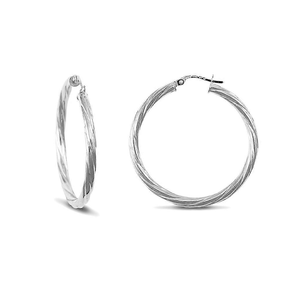 Jewelco London Sterling Silver Twist Hoop Earrings 3mm 35mm