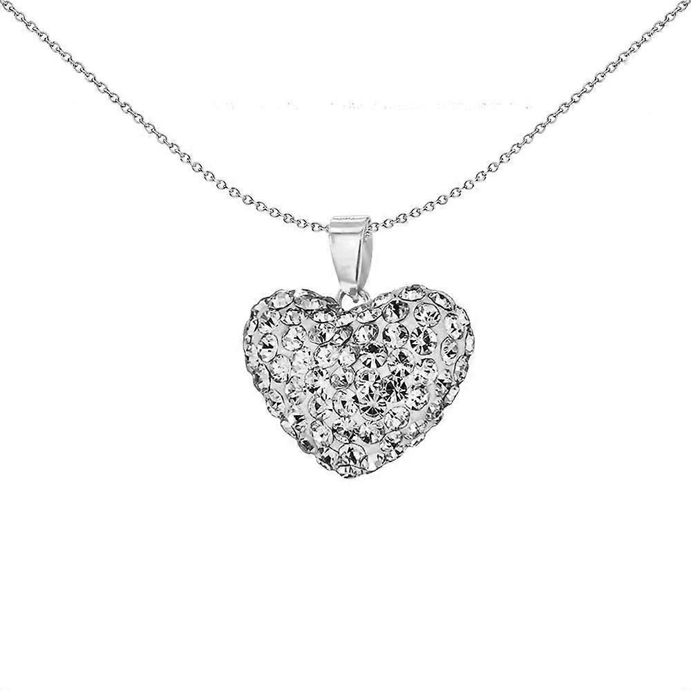 Jewelco London Sterling Silver White Crystal Encrusted Pillow Puff Love Heart Charm Pendant