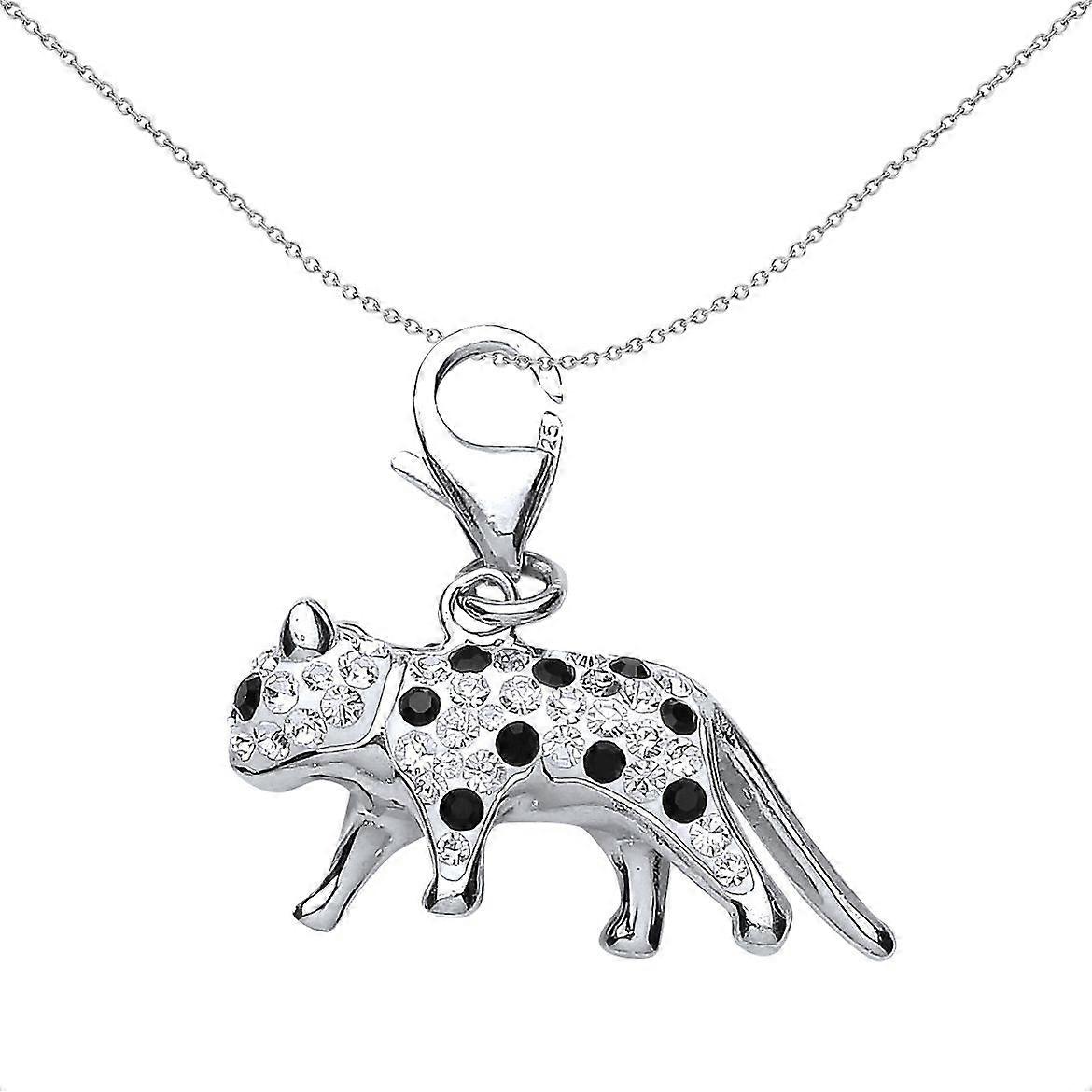 Jewelco London Sterling Silver White Crystal Leopard Charm