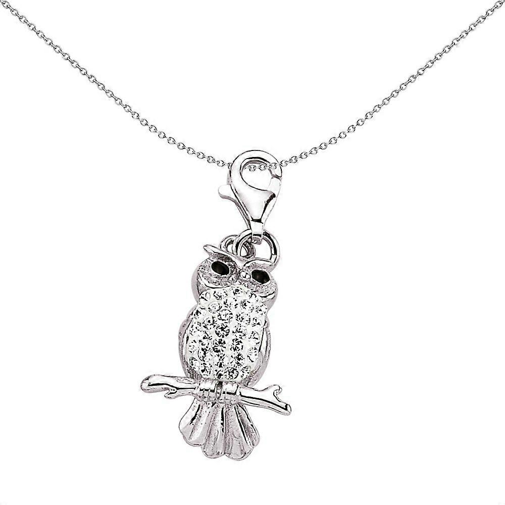 Jewelco London Sterling Silver White Crystal Owl Charm